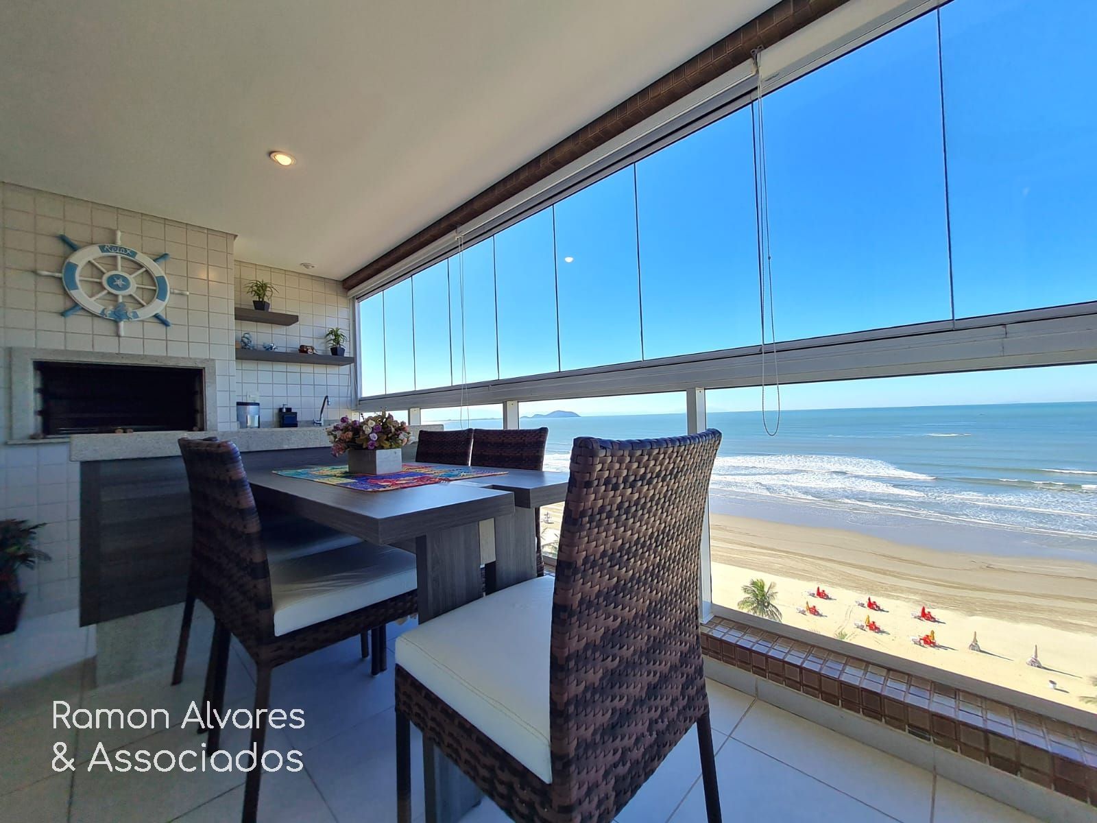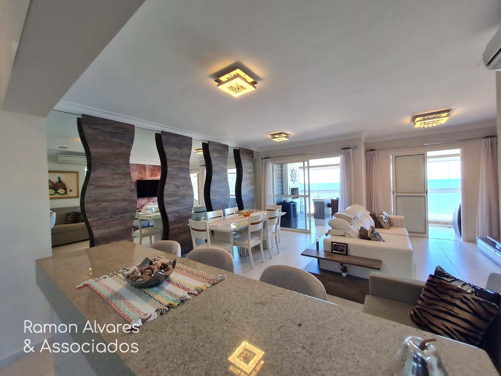 Apartamento frontal com uma vista deslumbrante de toda a orla da praia, sala ampliada, totalmente mobiliado.