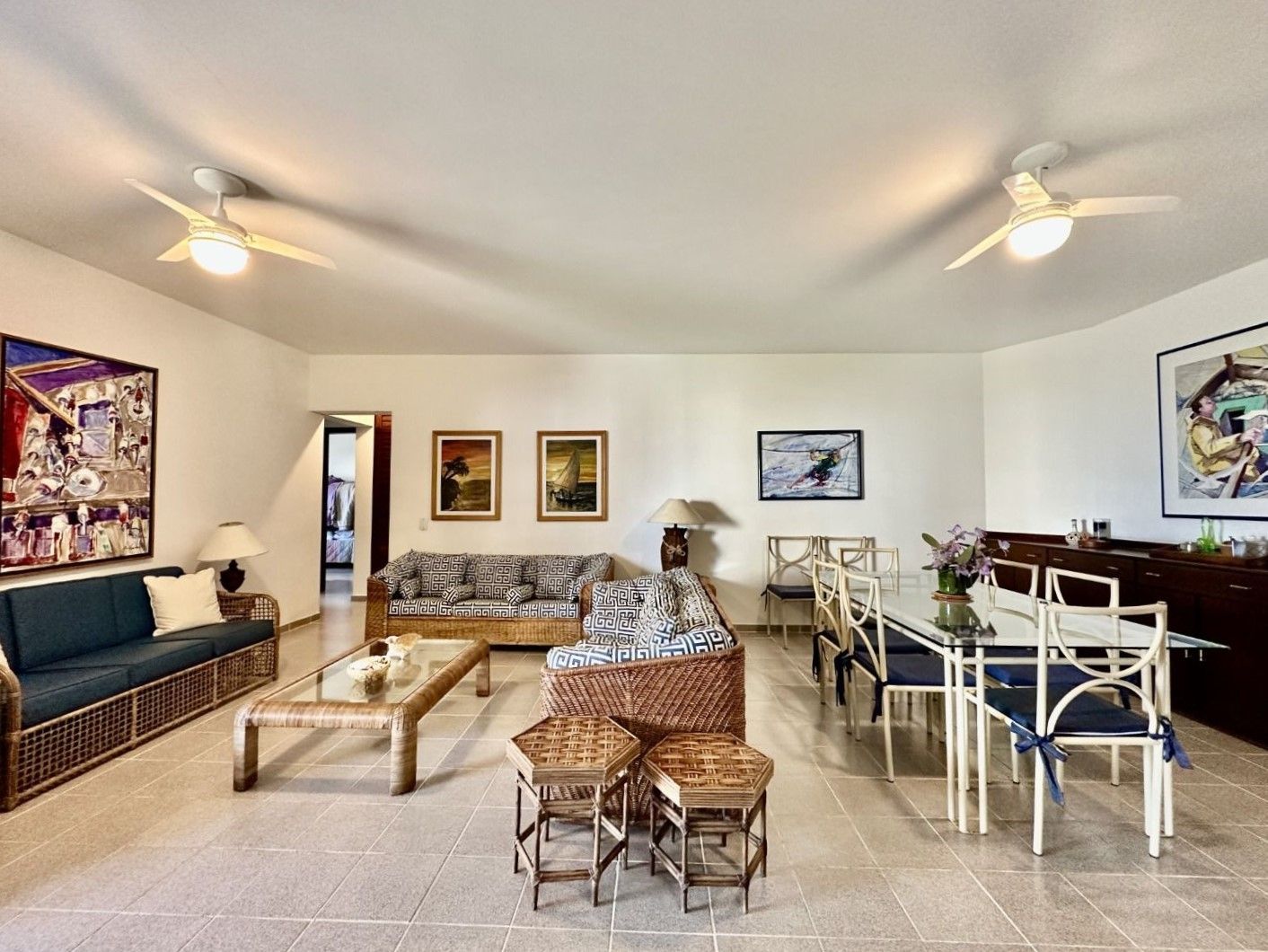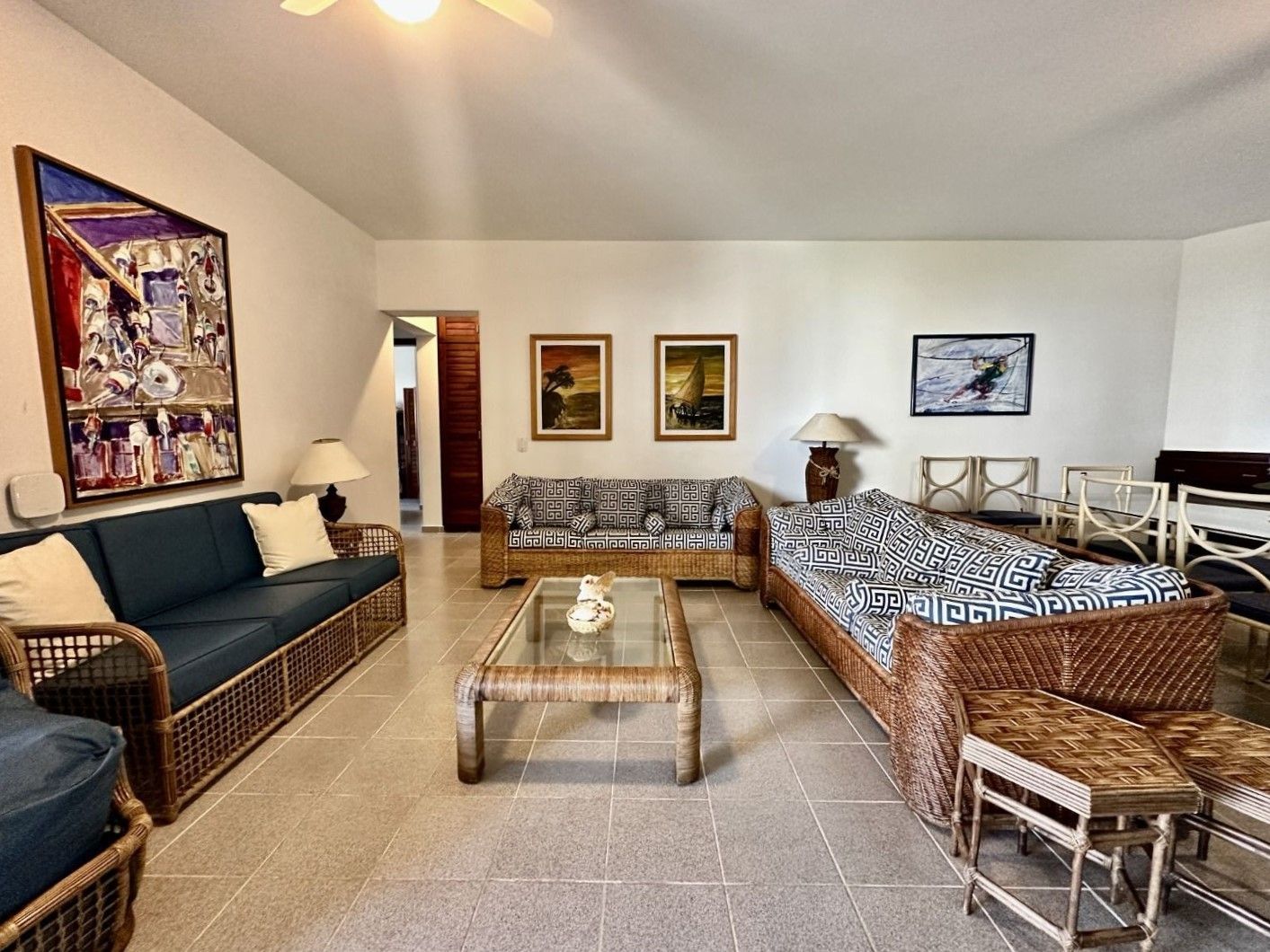 Apartamento pé na areia localizado do módulo 3, são 3 dormitórios sendo 1 suíte, ampla sala para 2 ambientes, varanda com vista para o mar e com rede de proteção, cozinha completa, quarto e área de serviço.