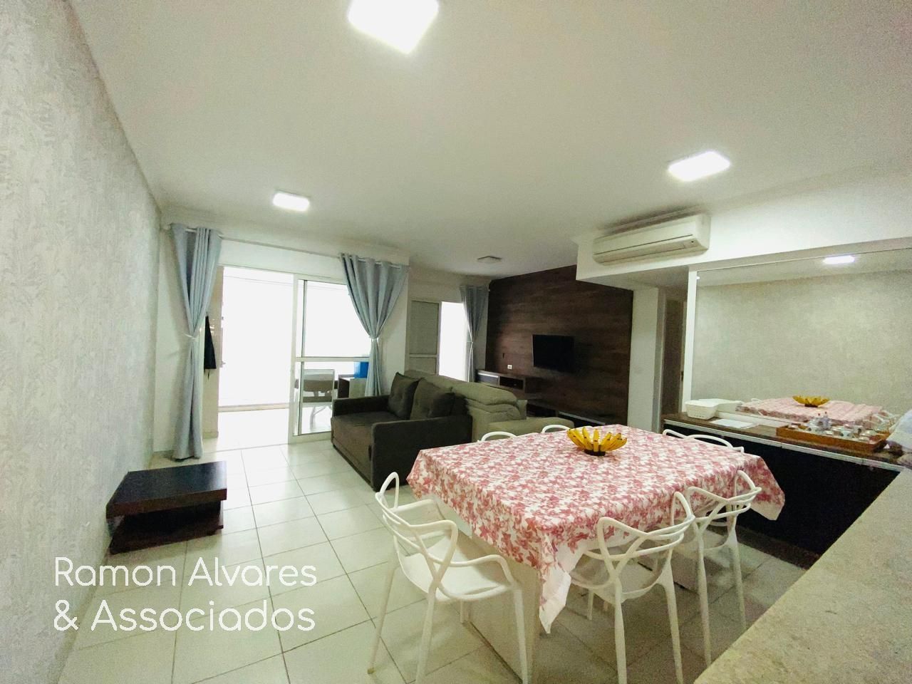 Apartamento mobiliado com 2 suítes , sala ampla para 3 ambientes com terraço e ar condicionado , cozinha americana com armários , w.c social e área de serviço.