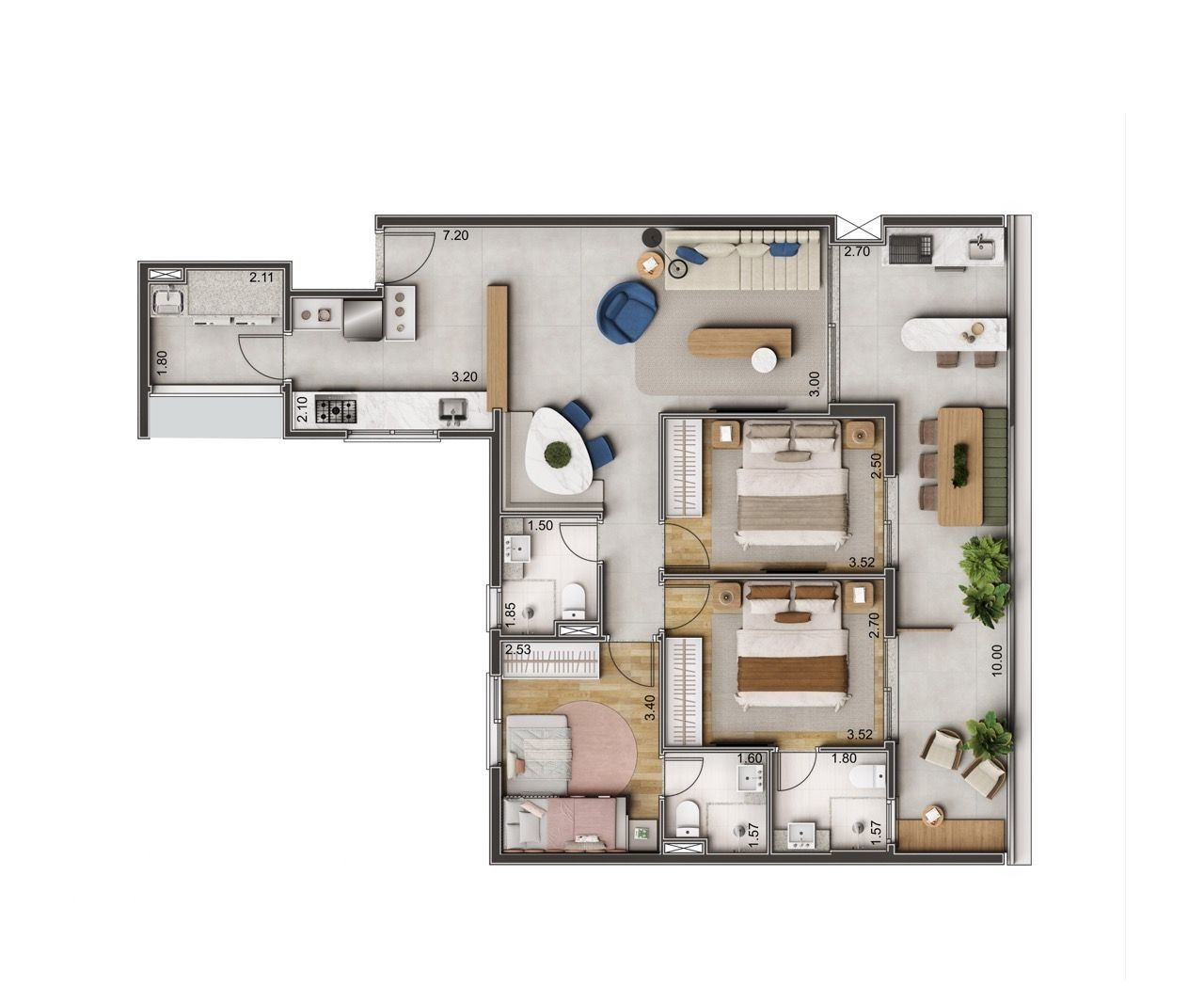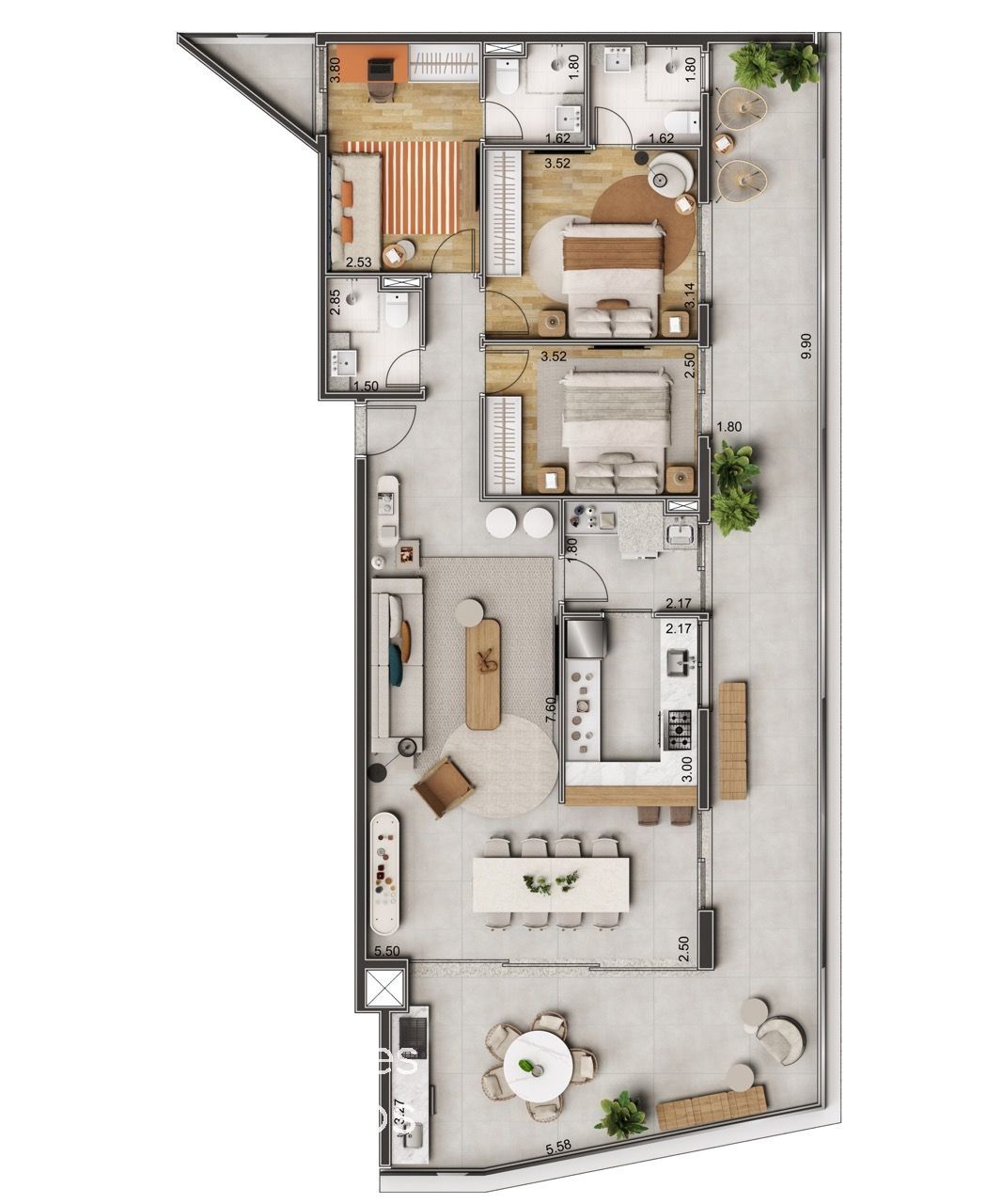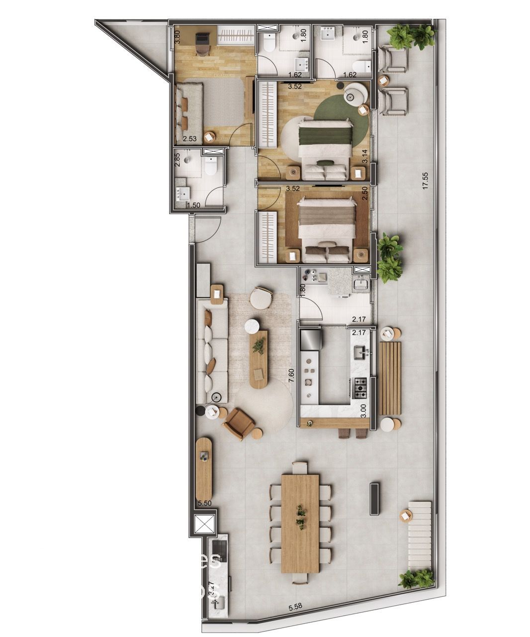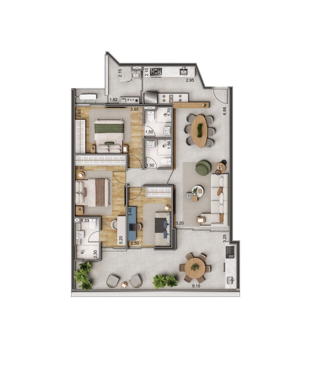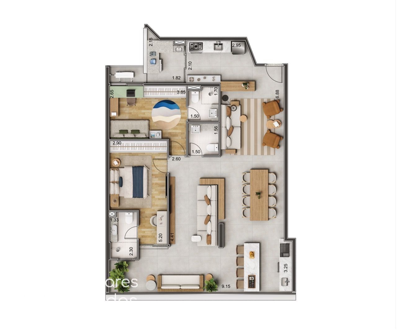 Apartamentos de 2 e 3 dormitórios, com metragens a partir de 89 M2 à 161M2 nas seguintes plantas: