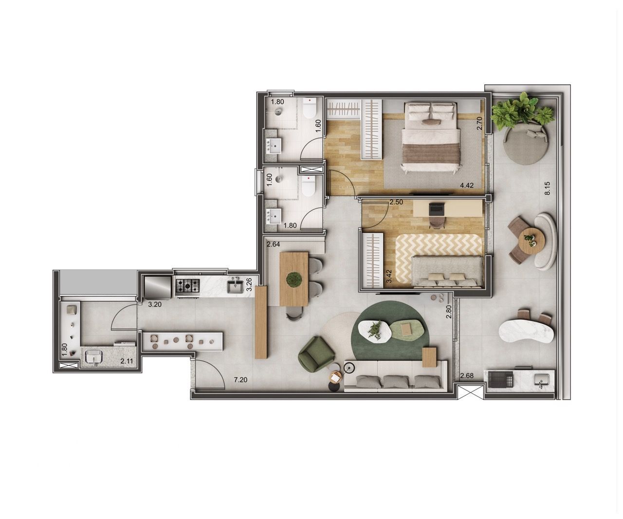 COM 104 m2 DE ÁREA ÚTIL, 3 DORMITÓRIO(S), 2 SUÍTE(S) E 2 VAGA(S).