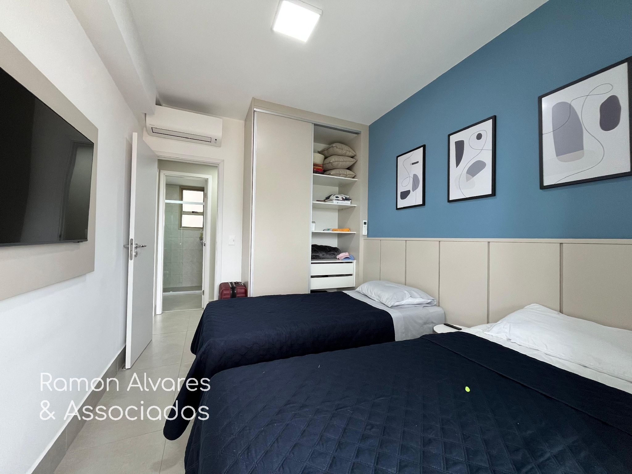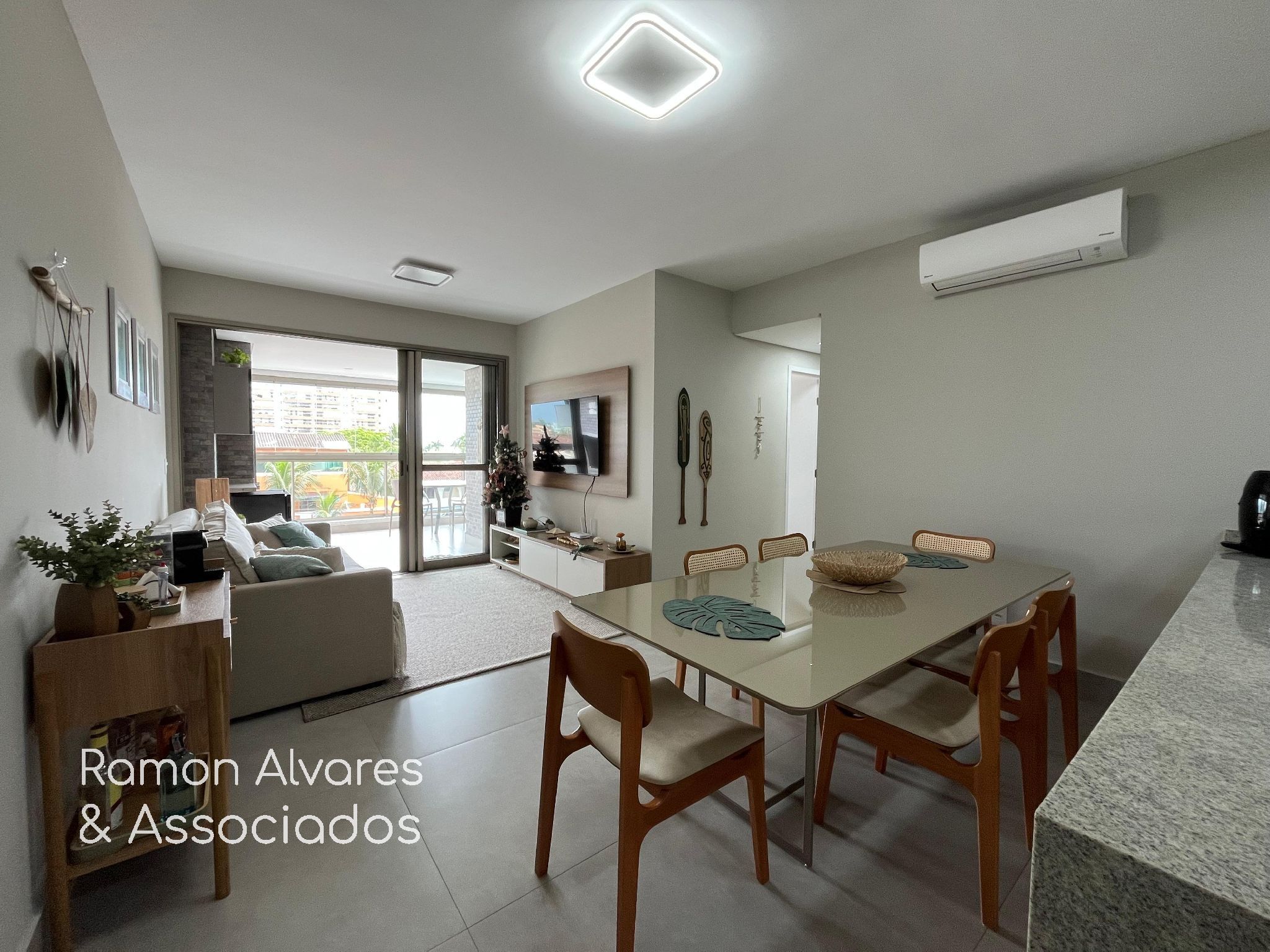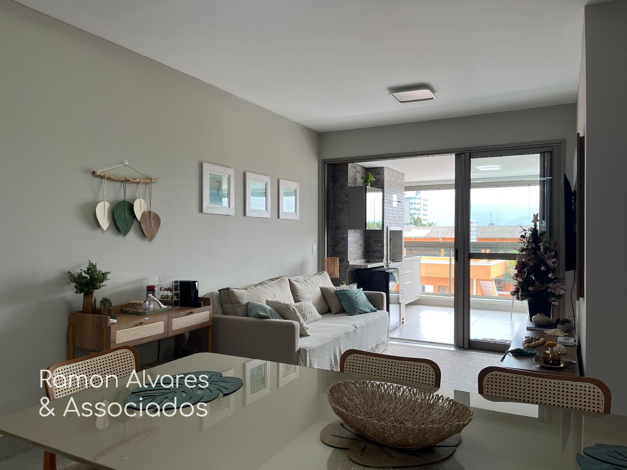 Apartamento com vista do mar , 3 dormitórios sendo 1 suíte , 1 dormitório reversível , sala ampla para 2 ambientes com ar , cozinha americana com armários , área de serviço e churrasqueira.