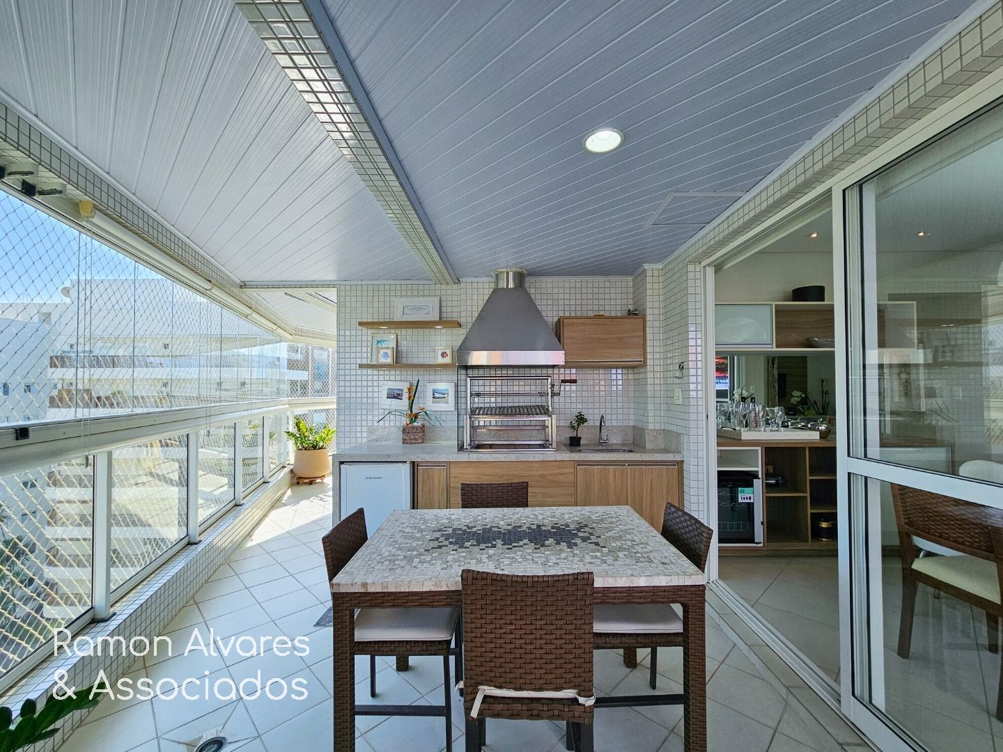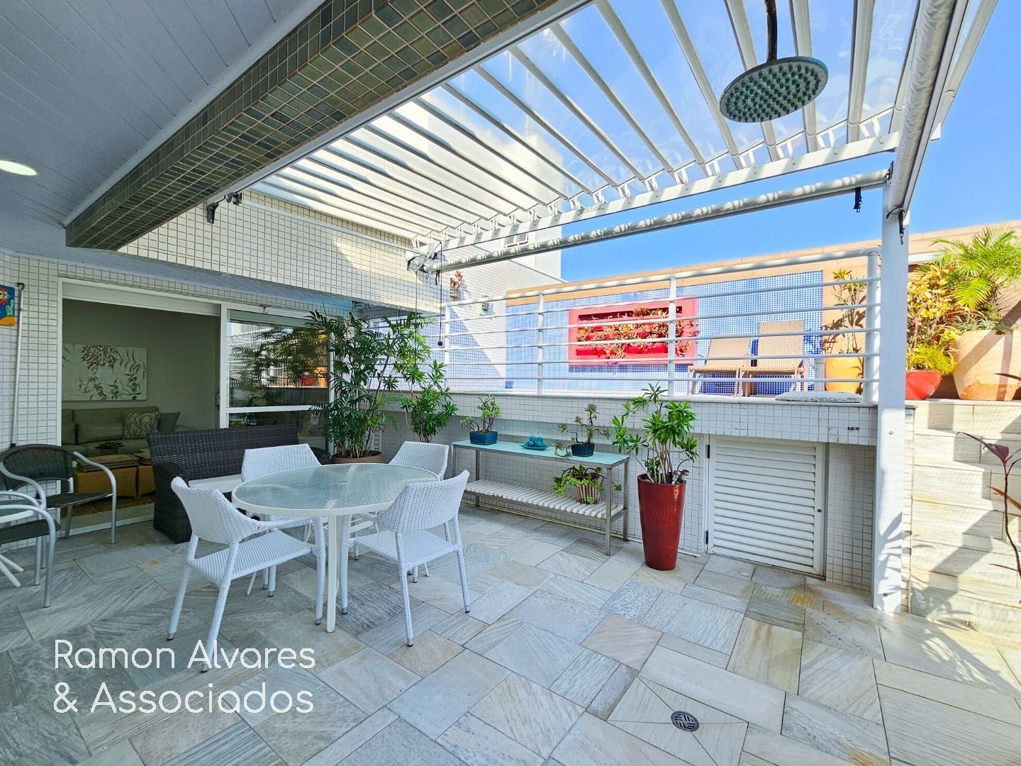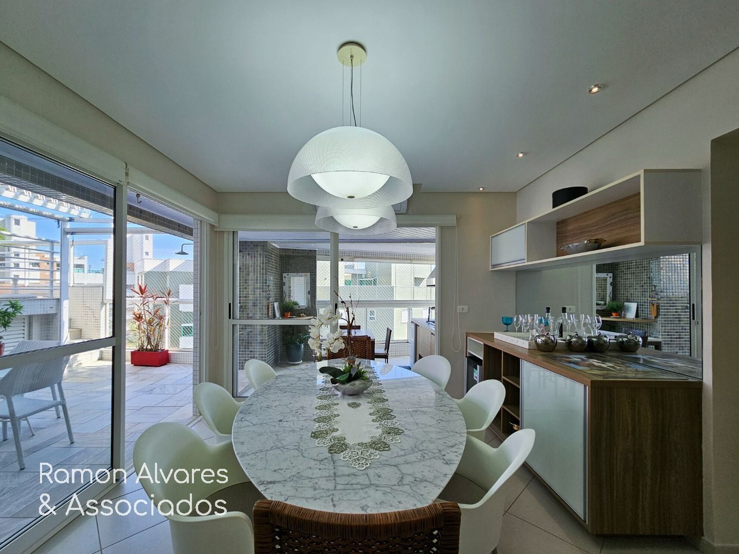 Luxuosa cobertura com vista para o mar, com saída para o clube compartilhado PE-17, contendo 5 suítes, sendo 1 reversível , armários embutidos, cozinha tradicional, completa, living para 2 ambientes, todos os ambientes com ar-condicionado, lavabo, área de serviço, piscina, churrasqueira, 3 vagas de garagem e área útil de 192,92 m2. Mobiliada – retira objetos pessoais.