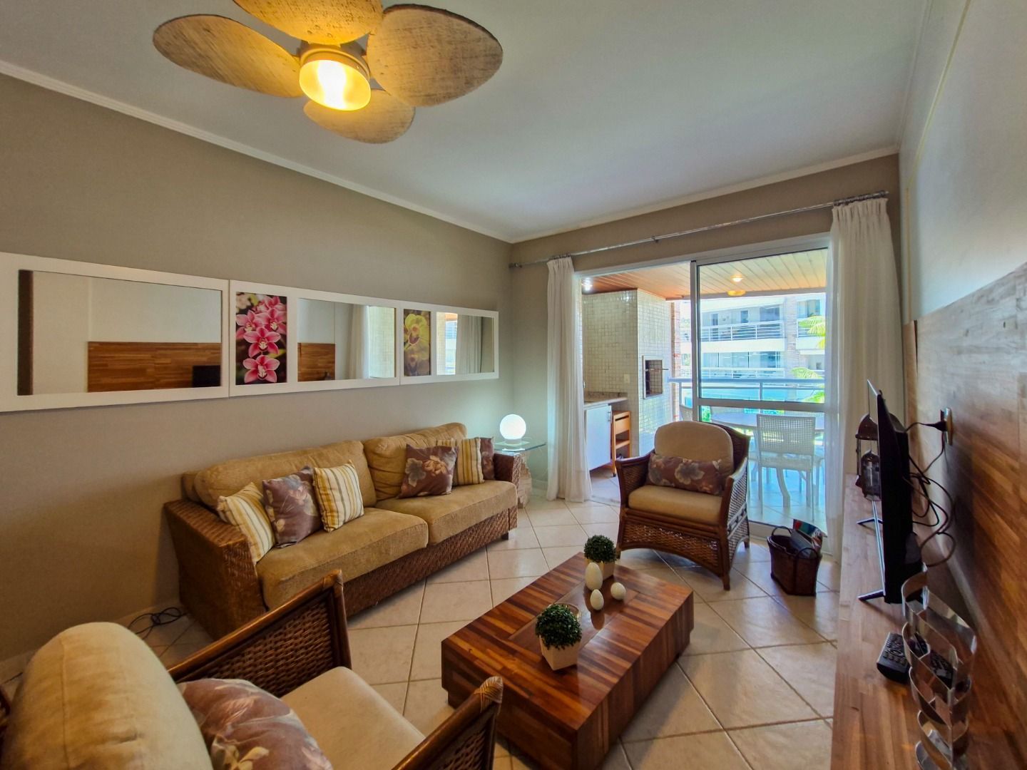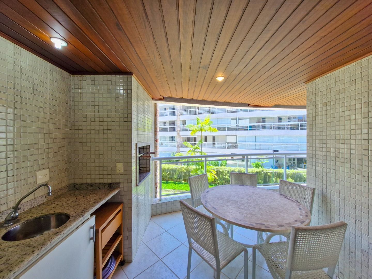Apartamento localizado no módulo 2, com 3 dormitórios sendo 3 suítes, sala para 2 ambientes com ar condicionado, cozinha completa, ar condicionado nos dormitórios, varanda gourmet com churrasqueira, serviço de praia e direito a 2 vagas de garagem.