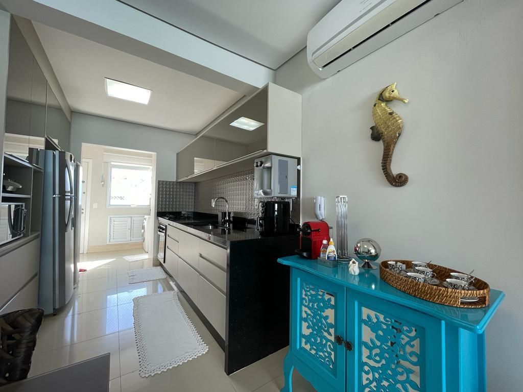 Lindo apartamento pé na areia, com 3 dormitórios, sendo 1 suíte, todos com armários embutidos, ar-condicionado e terraço, Living para 2 ambientes com ar-condicionado, 1 WC social, cozinha americana com armários, completa, ampla sacada com churrasqueira, fechamento de vidro, área de serviço, área útil de 96,52 m2, 2 vagas de garagem. *Mobiliado – Retira máquina de lavar, máquina de secar, cafeteira, enfeites, filtro, microondas, quadros, utensílios domésticos (cozinha) e objetos pessoais.