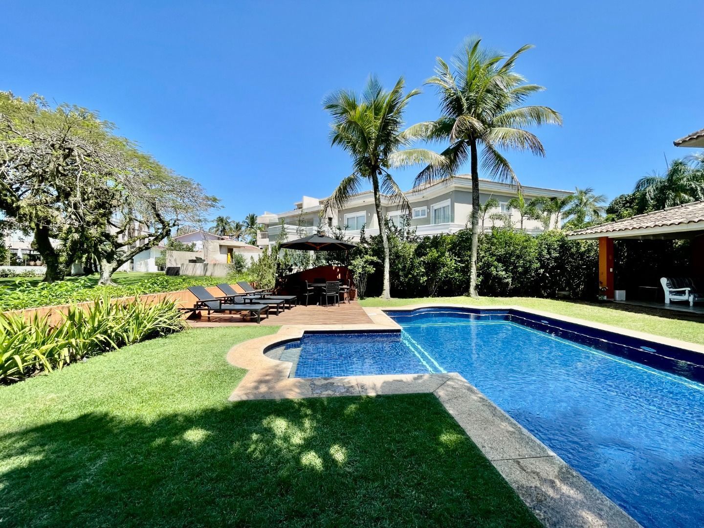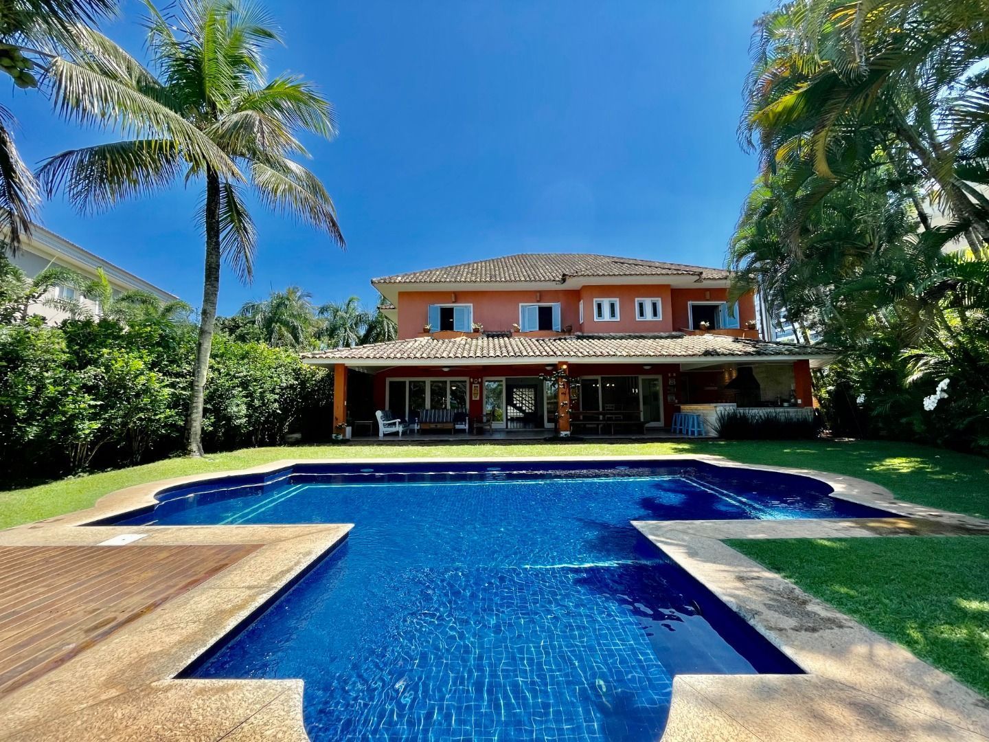 Casa pé na areia localizada no módulo 5, tem aproximadamente 100 metros da praia, são 5 suítes, sala para 3 ambientes, cozinha completa, climatização nos dorms e sala, varanda gourmet integrada a área da piscina e 4 vagas de garagem.
