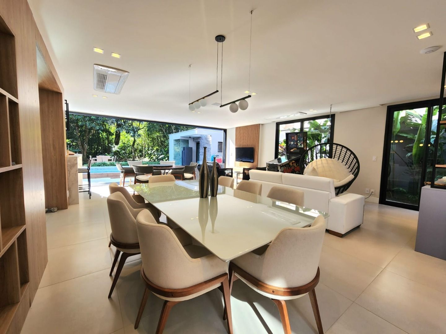 Belíssima casa mobiliada e finamente decorada à venda. * *Terreno 405,87 m2 *Construção 335,86 m2 *5 suites sendo uma Master com banheira e closet *Sala ampla com 3 ambientes *Lavabo interno e externo *Cozinha integrada a área gourmet *Todos ambientes climatizados *Área de servico *Piscina aquecida *Hidro *Fire place *Sauna úmida *Ampla área verde * *4 vagas de garagem sendo duas cobertas e duas descobertas
