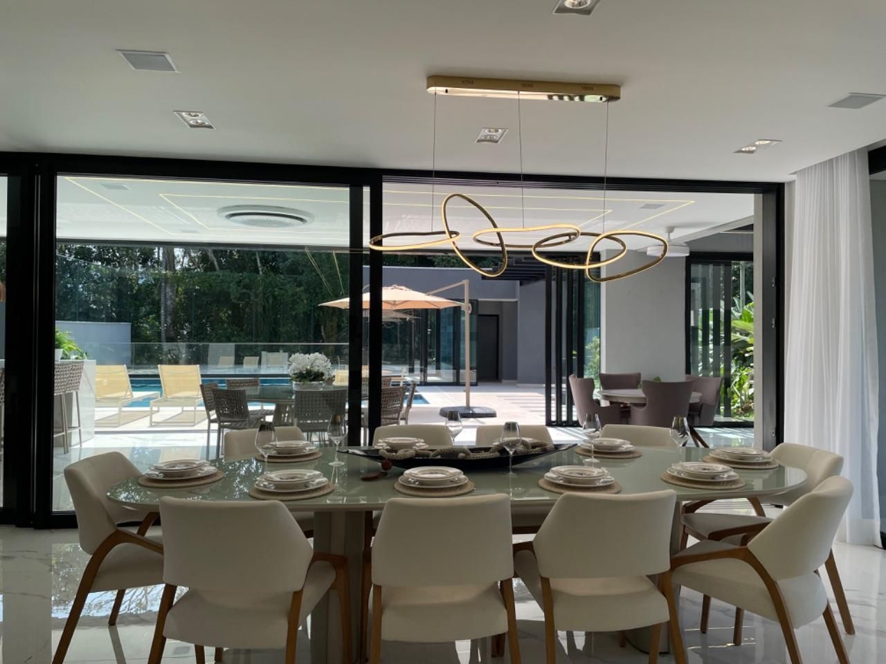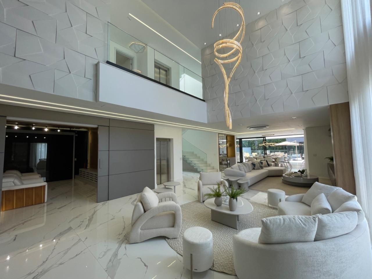 Belissima casa alto padrão em construção a venda no módulo do GOLF. * *1o Pavimento: *Living pata três ambientes *Lavabo *Sala de cinema *Adega *Cozinha com ilha integrada com a área gourmet *Área gourmet *Piscina *6 vagas de garagem * *2o Pavimento *6 suites sendo uma master *Corredor com copa * *3o Pavimento *Roupeiro *Copa *Academia.