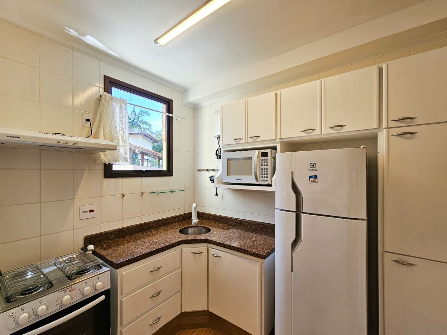 Aconchegante villágio no módulo 26, com 1 dormitório climatizado com 2 bicamas box, banheiro social, sala climatizada para 2 ambientes integrada a cozinha, pequena área de serviço, varanda com acesso a sala e direito a 1 vaga de garagem.